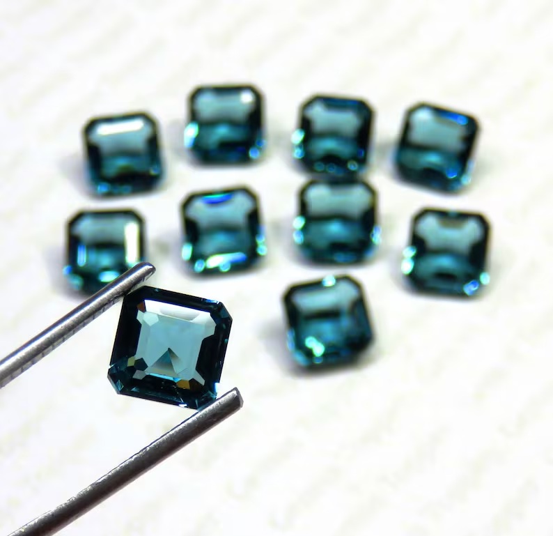 London Blue Topaz 8 mm, 9 mm, 10 mm Square Princess Cut- Best Quality Gemstone For Jewelry Making